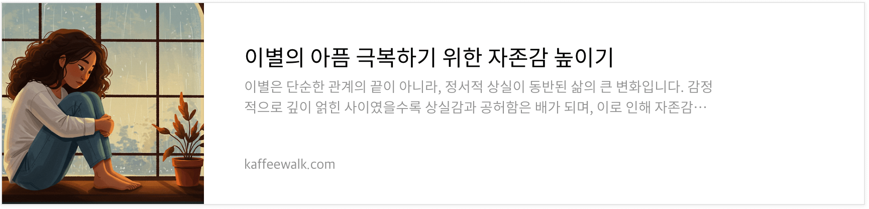 이 글에서 제시한 원인 분석과 자존감 회복 방법이 도움이 되셨길 바랍니다.